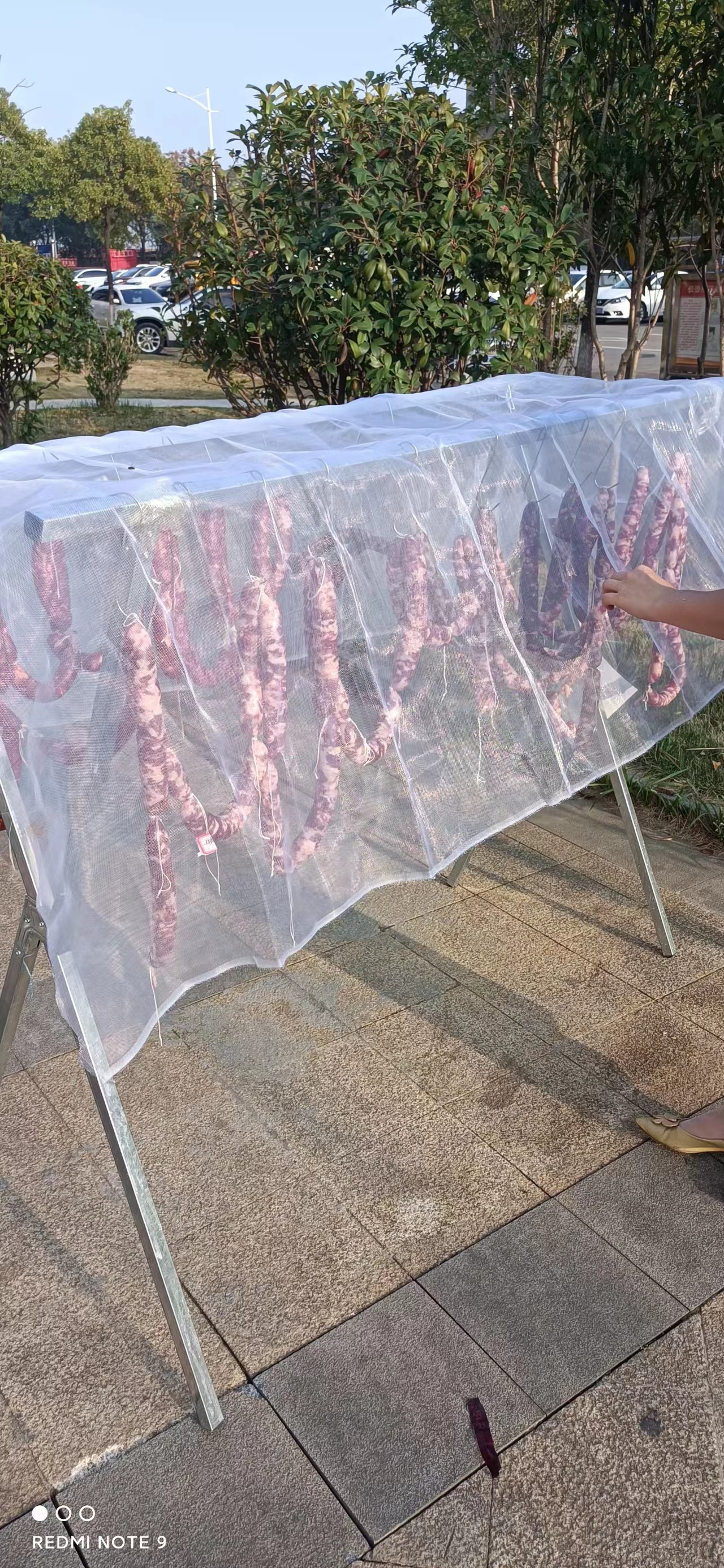 制作完畢正在晾曬中的臘腸(攝影:肖偉)