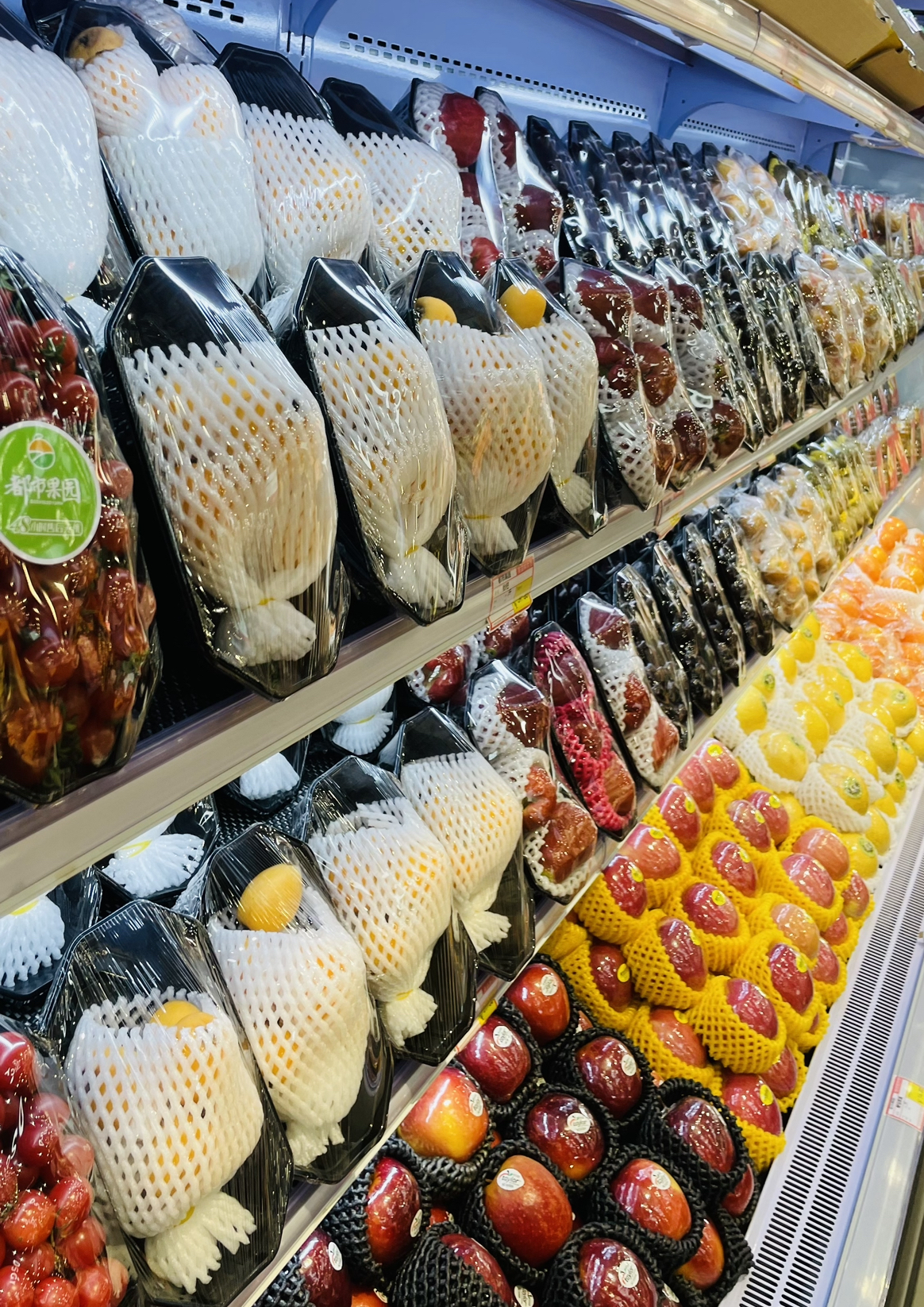 貨架上標(biāo)準(zhǔn)化水果琳瑯滿目