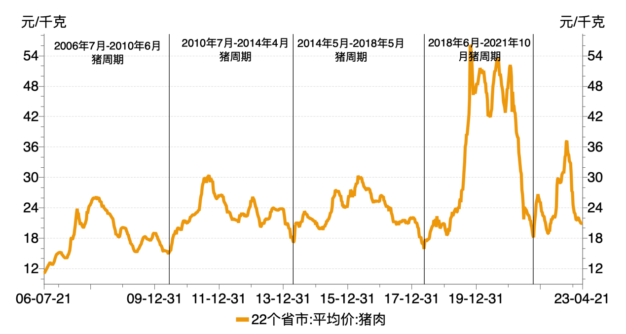 第四輪:受非洲豬瘟蔓延影響,周期自2018年6月至2022年3月,歷時46個月。