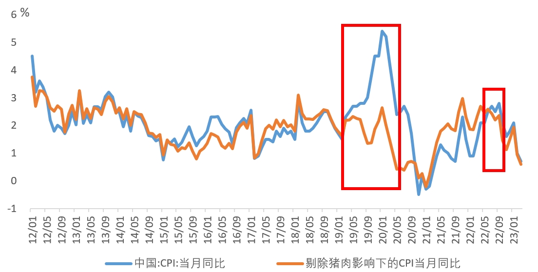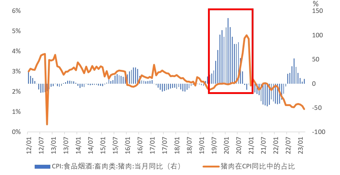 當然,若2023年下半年再次出現(xiàn)豬瘟等嚴重黑天鵝事件,則仍有可能導(dǎo)致豬肉供應(yīng)失衡,推動豬價大幅上漲,從而在一定程度上拉動2023年通脹的上行。