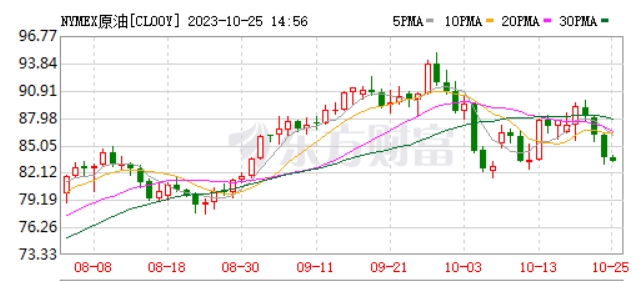 東方財(cái)富CHOICE終端顯示,北京時(shí)間10月25日,紐約商品交易所掛牌交易的NYMEX原油期貨主力合約一度向下觸及83.17點(diǎn)。此前,因地緣沖突導(dǎo)致該合約一度向上觸及95.02點(diǎn),目前上漲幅度已經(jīng)全部抹平,自高點(diǎn)累計(jì)回落13.52%。
