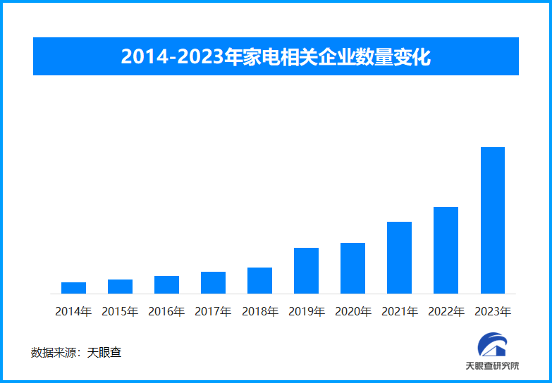 天眼查專業(yè)版數(shù)據(jù)顯示,截至目前,現(xiàn)存與家電相關(guān)的企業(yè)超過1921.9萬家,其中2024年1月份到10月份以來的企業(yè)注冊數(shù)量為404.3萬家。從企業(yè)年度注冊量可以看出,近十年來,家電相關(guān)企業(yè)的注冊量一直呈現(xiàn)出穩(wěn)健的上升趨勢,并于2023年達(dá)到峰值,注冊量超過415.8萬家??梢钥吹剑瑹o論是消費還是生產(chǎn)銷售等各條鏈路,家電行業(yè)都呈現(xiàn)出非常喜人的增長態(tài)勢。