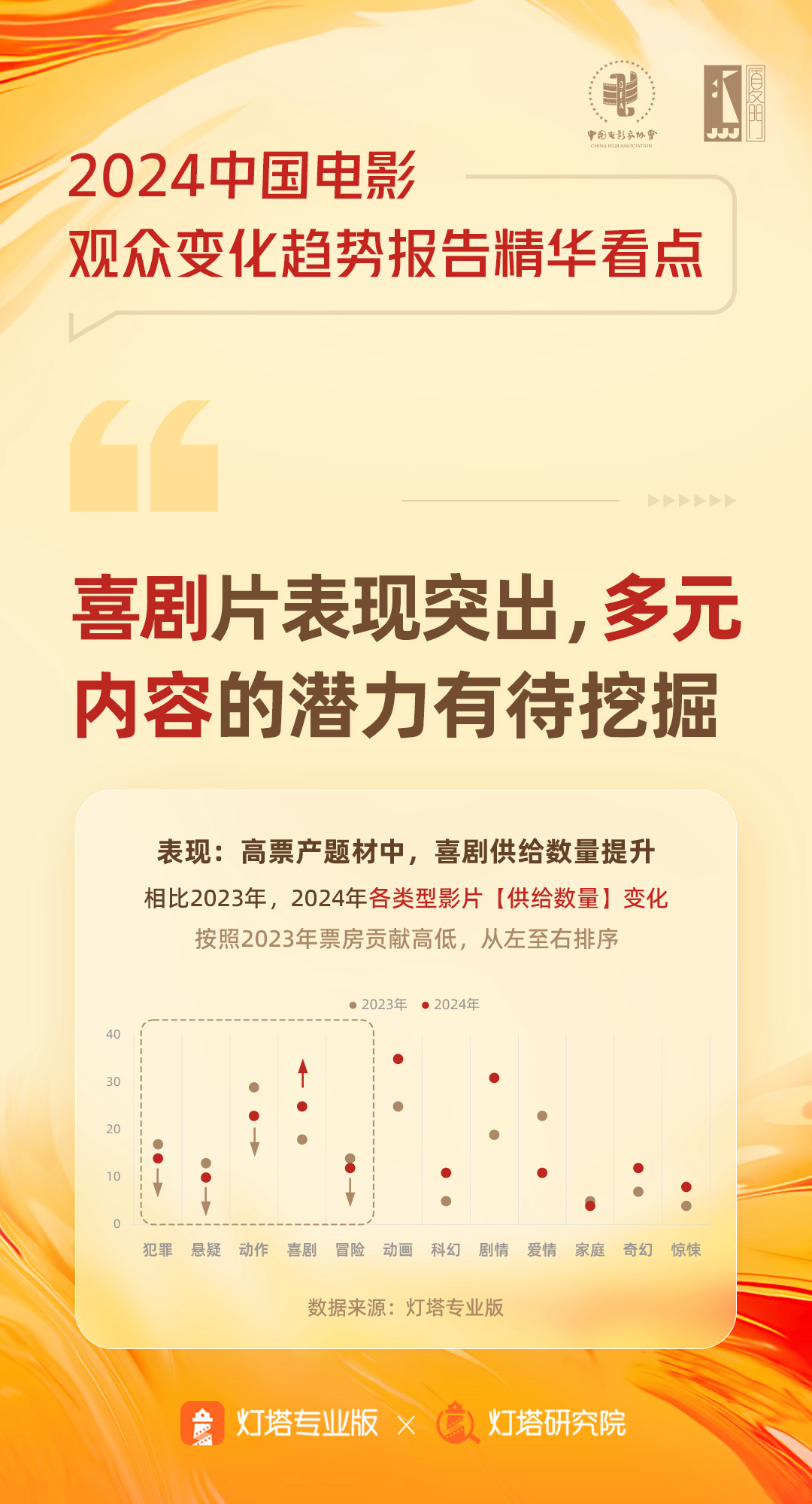2024年,中國電影市場迎來很多新變化。對電影從業(yè)者來說,尤其需要以數(shù)據(jù)分析、科學(xué)調(diào)研為依據(jù),洞察市場的變化趨勢,真正看懂觀眾的真實需求。此次報告集電影家協(xié)會與燈塔研究院的合力,以燈塔研究院的專業(yè)能力為依托,從市場情況、觀眾特征、消費偏好、觀影動機、觀影習(xí)慣等多角度出發(fā),展現(xiàn)并分析了2024年中國電影市場及觀眾的變化。