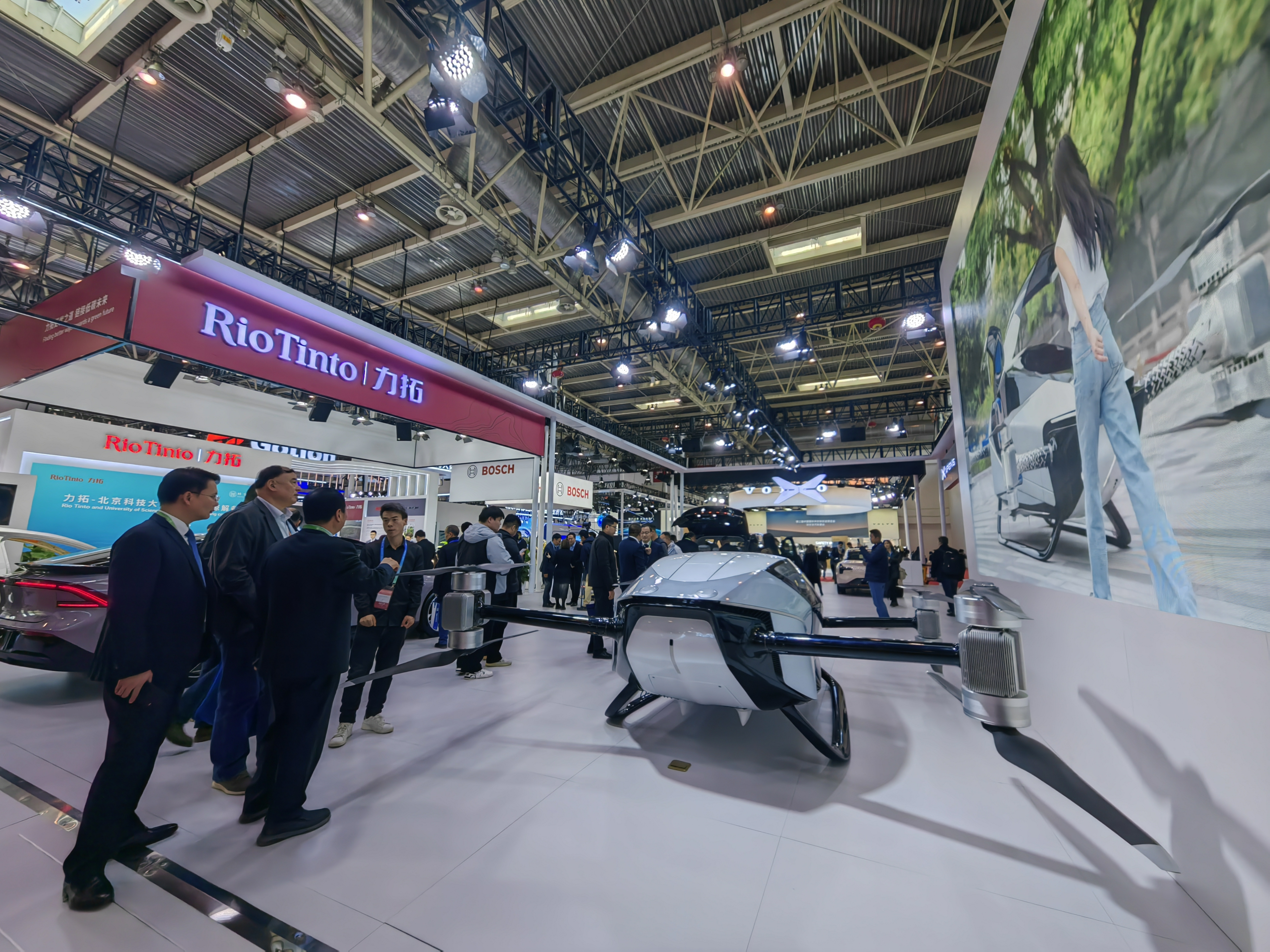 與力拓/寶武集團(tuán)展臺(tái)相鄰的,是博世/小鵬聯(lián)合展臺(tái)。其中最吸引人眼球的,是一款雙人版智能電動(dòng)垂直起降飛行器“旅航者X2”。小鵬展臺(tái)工作人員向記者介紹,2022年底,“旅航者X2”獲得工信部頒發(fā)的“中國(guó)優(yōu)秀工業(yè)設(shè)計(jì)獎(jiǎng)”金獎(jiǎng);2023年1月,“旅航者X2”獲得中國(guó)民用航空中南地區(qū)管理局頒發(fā)的特許飛行證,是國(guó)內(nèi)提出申請(qǐng)并成功獲批的有人駕駛eVTOL(電動(dòng)垂直起降)產(chǎn)品。