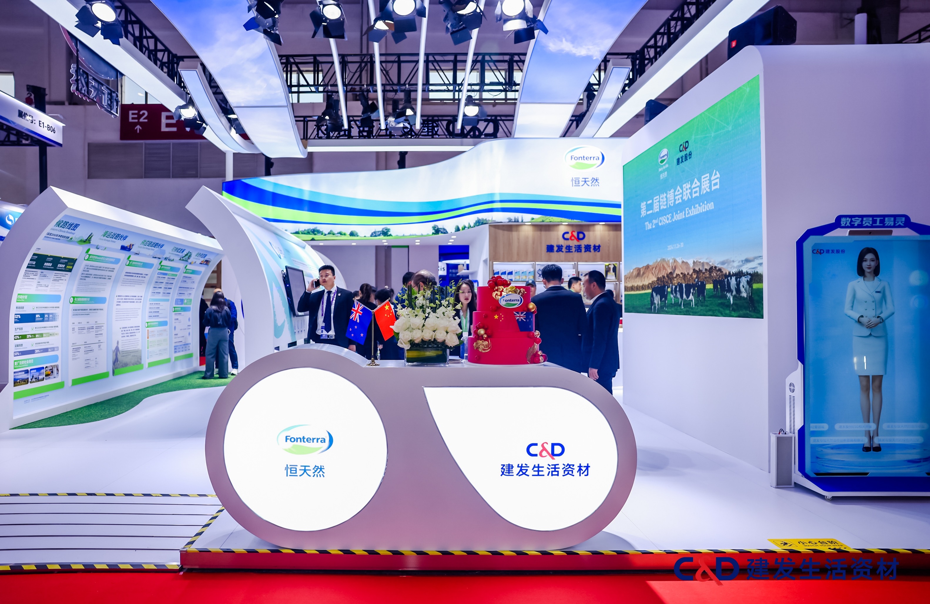 在綠色農(nóng)業(yè)鏈展區(qū),記者也發(fā)現(xiàn)了一個(gè)“聯(lián)合展臺(tái)”——恒天然/建發(fā)生活資材。建發(fā)生活資材是建發(fā)股份的全資子公司。在聯(lián)合展臺(tái)上,建發(fā)股份通過(guò)數(shù)字化員工“易靈”一體機(jī)與觀眾熱情互動(dòng),可智能回復(fù)建發(fā)股份與恒天然的合作情況及可持續(xù)實(shí)踐成果等。此外,涵蓋“恒天然氣候路線圖、海運(yùn)戰(zhàn)略伙伴、供應(yīng)鏈戰(zhàn)略伙伴——建發(fā)股份、建發(fā)可持續(xù)發(fā)展、建發(fā)綠色供應(yīng)鏈服務(wù)等主題”的供應(yīng)鏈長(zhǎng)廊,以圖文并茂的方式讓參觀者直觀且有序地了解雙方從牧場(chǎng)到餐桌的可持續(xù)發(fā)展生態(tài)鏈。