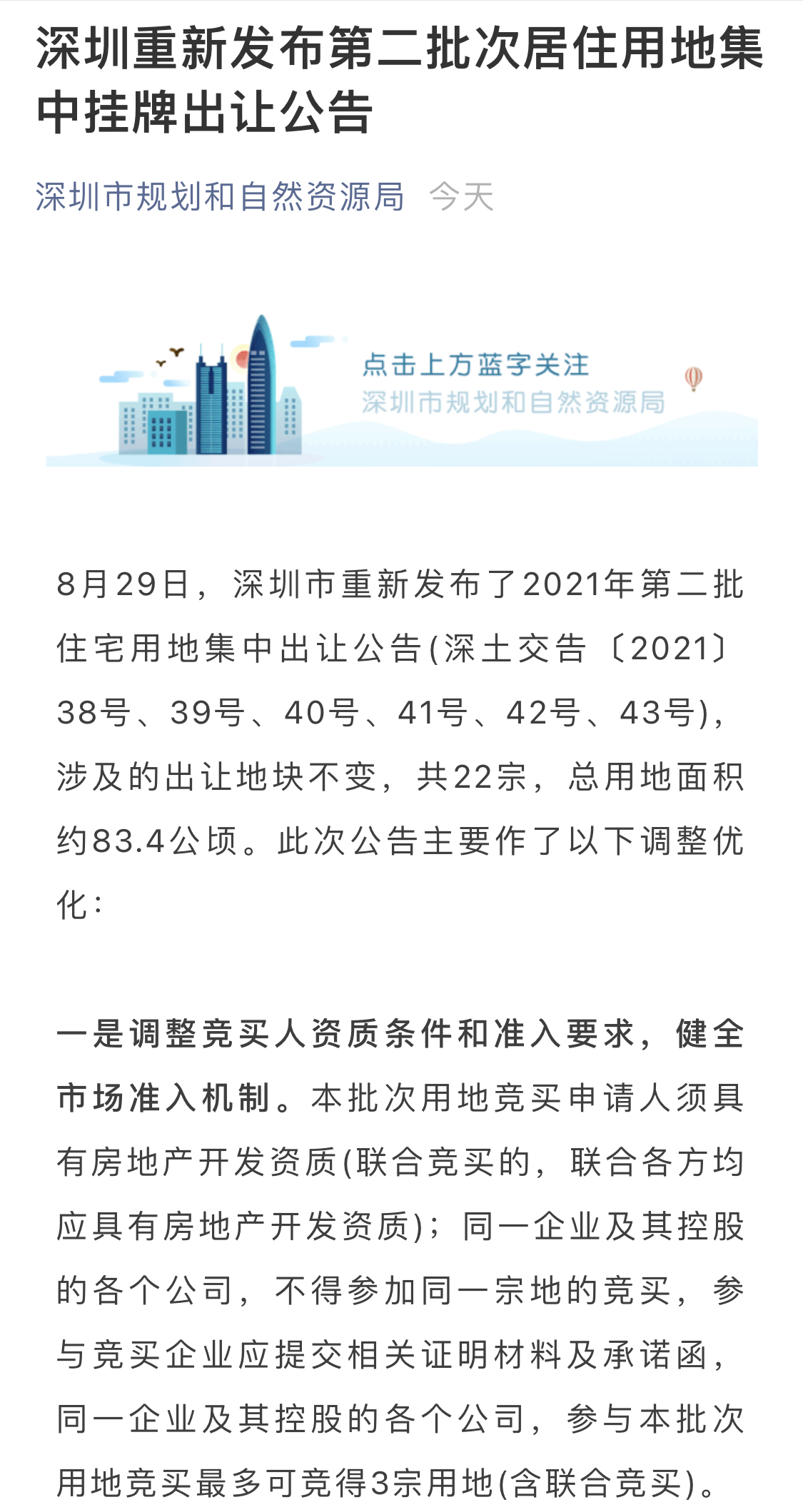 最近一段時(shí)間,多城第二批集中供地在“急剎車”后,正陸續(xù)“返場”?!蹲C券日報(bào)》記者注意到,8月29日,深圳重新發(fā)布了2021年第二批住宅用地集中出讓公告。盡管其涉及的出讓地塊數(shù)量不變,仍為22宗,但出讓條件卻進(jìn)一步優(yōu)化。