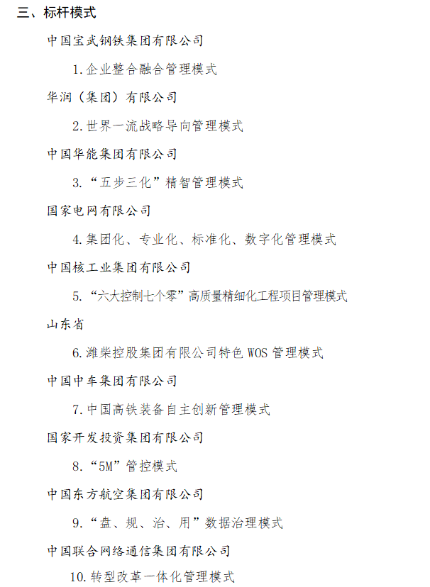 從此次選出的標(biāo)桿企業(yè)、標(biāo)桿項目和標(biāo)桿模式看,可謂“點、線、面”全方位展示了基層企業(yè)管理實踐、專業(yè)領(lǐng)域管理方法和集團整體管理模式。