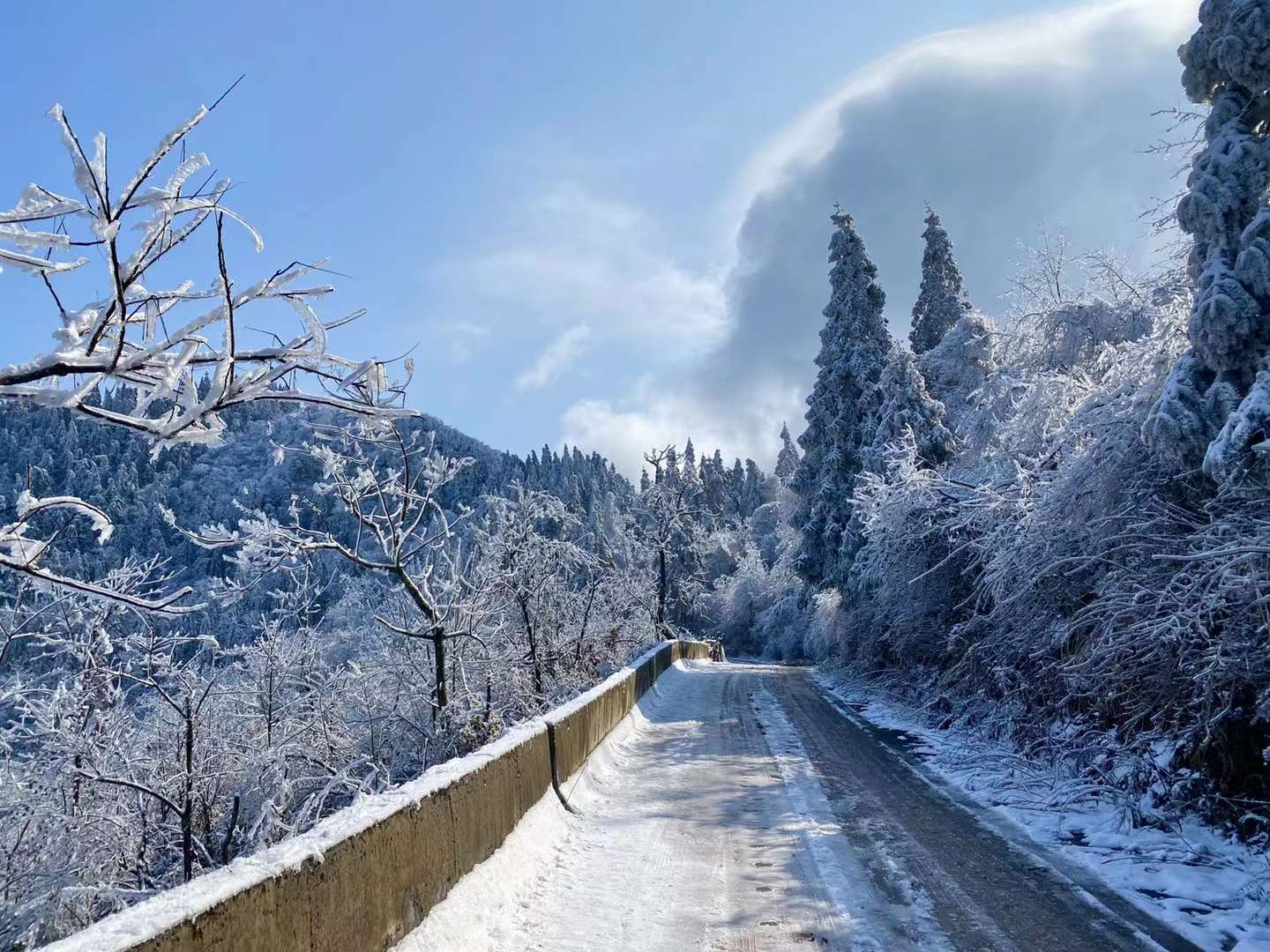 在山區(qū)公路上看到遠處的降雪宛如仙境(攝影:肖偉)