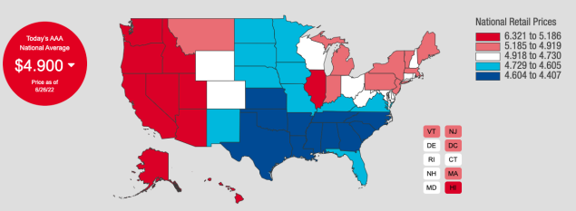 根據(jù)美國汽車協(xié)會(AAA)的數(shù)據(jù)顯示,6月26日全美平均油價已達到4.9美元每加侖。拜登提議的支持者表示,如果結(jié)合其他政策效應(yīng),暫停征收聯(lián)邦汽油稅后,每加侖汽油價格最多可下降1美元。