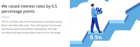 歐洲央行的主要存款利率過去8年一直為負,此次加息主要是為應(yīng)對歐元區(qū)日益嚴重的通脹現(xiàn)象。