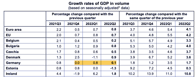 據(jù)新華財經(jīng)消息,歐盟統(tǒng)計局9月7日公布的最新數(shù)據(jù)顯示,歐元區(qū)第二季度GDP年率終值錄得4.1%,較第一季度5.4%有所回落,季率終值錄得0.8%。其中,歐元區(qū)最大經(jīng)濟體德國第二季度GDP季率終值僅錄得0.1%,遠低于第一季度的0.8%。