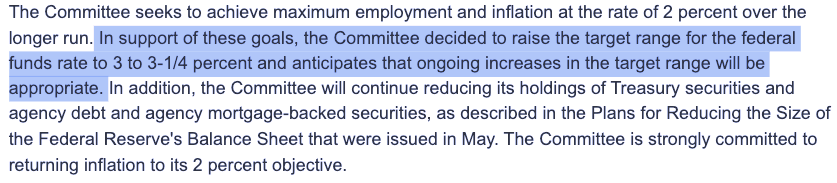聲明還顯示,F(xiàn)OMC將按5月份發(fā)布的《減少美聯(lián)儲資產(chǎn)負(fù)債表規(guī)模的計劃》延續(xù)既定的縮表進(jìn)程,致力于使通脹回落到2%的目標(biāo)。