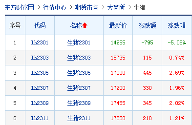 生豬期貨各月份合約陸續(xù)走高(供圖:東方財富)