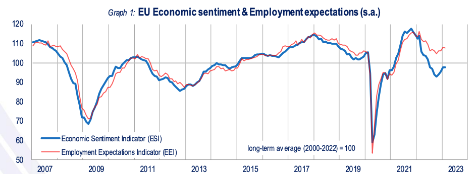 2月27日18時(shí),由歐盟經(jīng)濟(jì)和財(cái)政事務(wù)委員會(huì)編撰的經(jīng)濟(jì)景氣指數(shù)報(bào)告(以下簡(jiǎn)稱(chēng)“報(bào)告”)出爐,2月份,歐盟、歐元區(qū)經(jīng)濟(jì)景氣指數(shù)基本與前月持平,其中歐盟地區(qū)為97.8,與1月份水平一致。歐元區(qū)經(jīng)濟(jì)景氣指數(shù)則小幅下降0.1,錄得99.7。