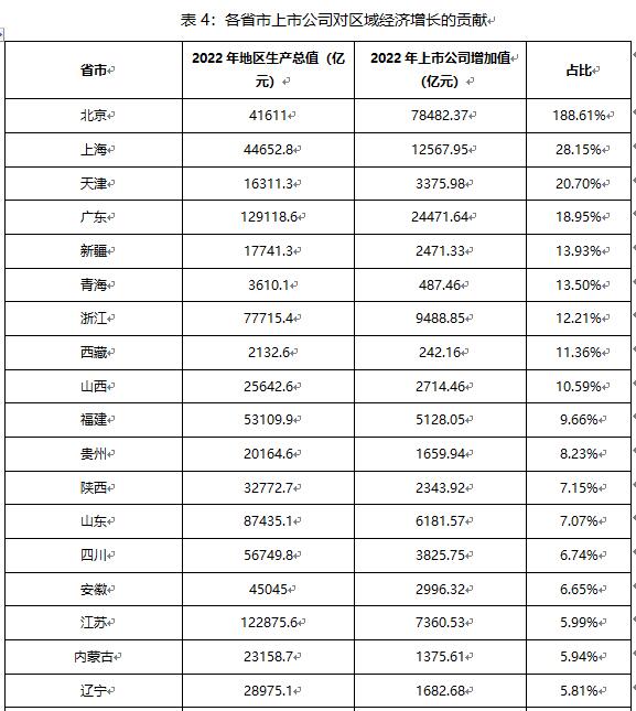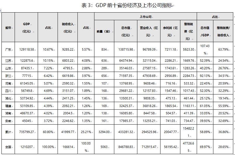 3、上市公司為GDP排名前十的省份貢獻了36.86%的稅收收入