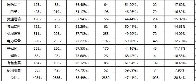 7、十大行業(yè)的上市公司經(jīng)營業(yè)績表現(xiàn)突出