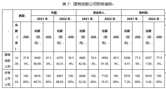 2022年上市公司發(fā)展出現(xiàn)了兩個70%現(xiàn)象,一是民營控股公司數(shù)量占A股上市公司總量接近70%,二是國有控股公司凈利潤占A股公司凈利潤總額超過70%。這兩種現(xiàn)象粗看起來,有點相背而行。實際上這兩種現(xiàn)象的發(fā)生是上市公司33年發(fā)展演變的結(jié)果。從2022年上市公司年報分析情況看,國有控股公司在資源性、金融類公司方面優(yōu)勢顯著,但是在凈資產(chǎn)收益率、平均利息費用、平均股價等方面,與民營控股公司比較,仍有差距。因此,要在深化改革方面進一步推進。(1)要把地方國企改革(如東三?。⒌胤叫姓w制改革和上市公司發(fā)展結(jié)合起來,統(tǒng)籌推進;(2)以北京為重點,把央企控股上市公司改革和民營控股上市公司發(fā)展結(jié)合起來,總結(jié)經(jīng)驗,找到方向;(3)要從三個重點方面推進國有控股公司的提質(zhì)增效,一是完善公司治理和ESG評級,二是進一步突出主業(yè),把總股本龐大的公司分拆上市,三是進一步推進落實國有控股上市公司股權(quán)激勵措施的大量覆蓋。唯有這樣,才能增加國有控股公司的流動性,穩(wěn)定投資者預(yù)期,做強做精國有控股上市公司。