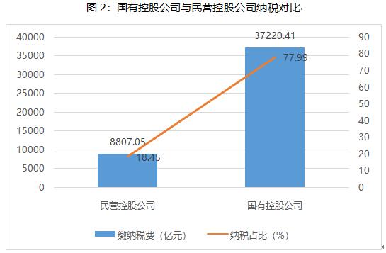 從繳納稅費情況看,2022年,國有控股公司繳納了3.72萬億元稅費,占A股上市公司繳納稅費總額的77.99%,近八成。