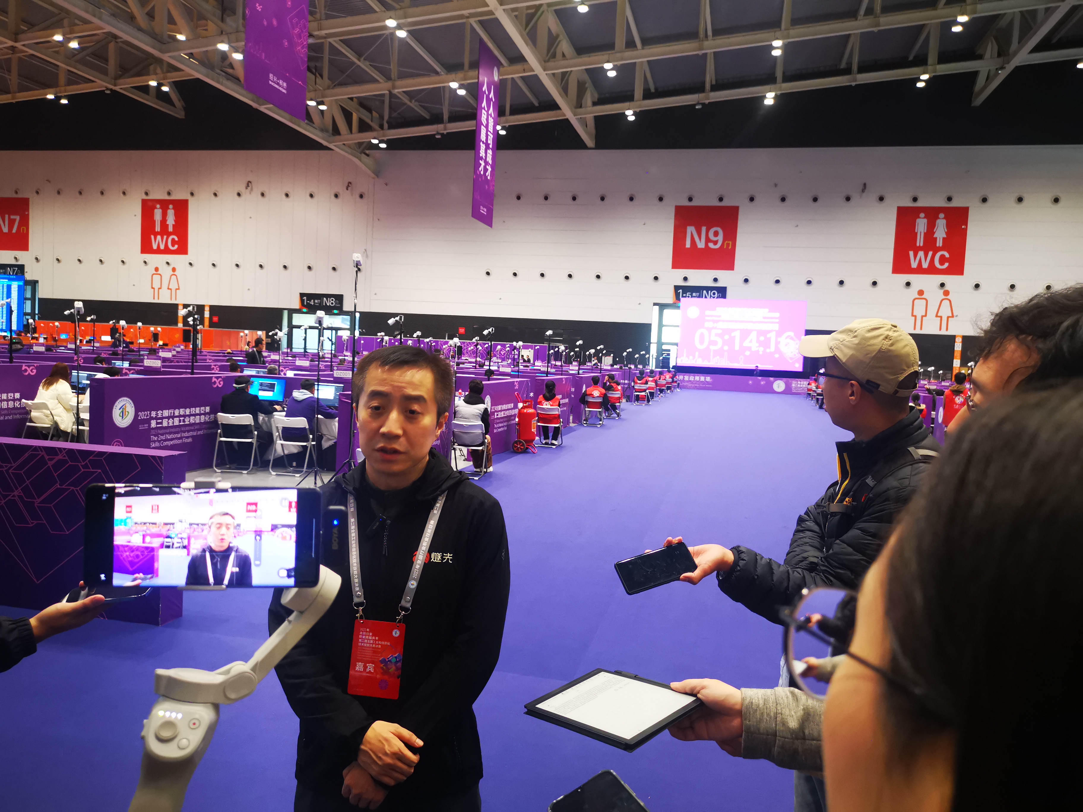 11月17日,在由工業(yè)和信息化部、人力資源社會(huì)保障部、教育部、中華全國(guó)總工會(huì)、共青團(tuán)中央共同主辦的2023年全國(guó)行業(yè)職業(yè)技能競(jìng)賽——第二屆全國(guó)工業(yè)和信息化技術(shù)技能大賽(下稱“技能大賽”)決賽現(xiàn)場(chǎng),5G+虛擬現(xiàn)實(shí)開(kāi)發(fā)應(yīng)用賽項(xiàng)正緊張進(jìn)行中,參賽選手不斷對(duì)頭顯設(shè)備進(jìn)行調(diào)試,按照要求設(shè)計(jì)場(chǎng)景。