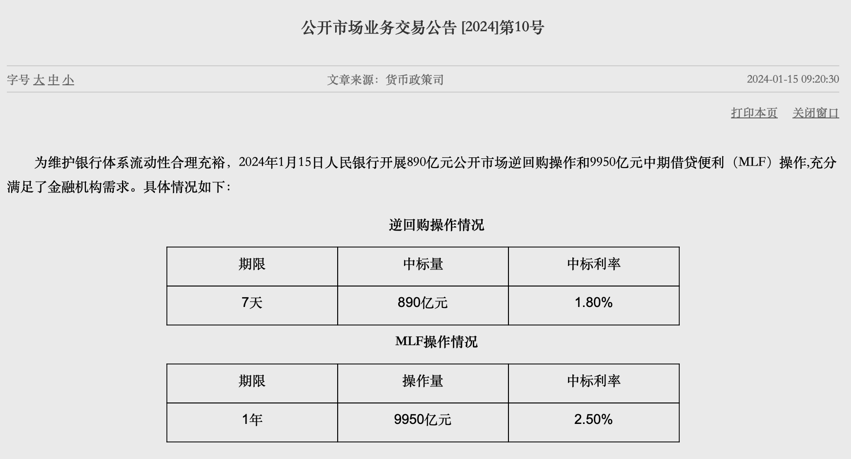 1月15日,中國(guó)人民銀行(下稱“央行”)開(kāi)展今年首次MLF(中期借貸便利)操作。