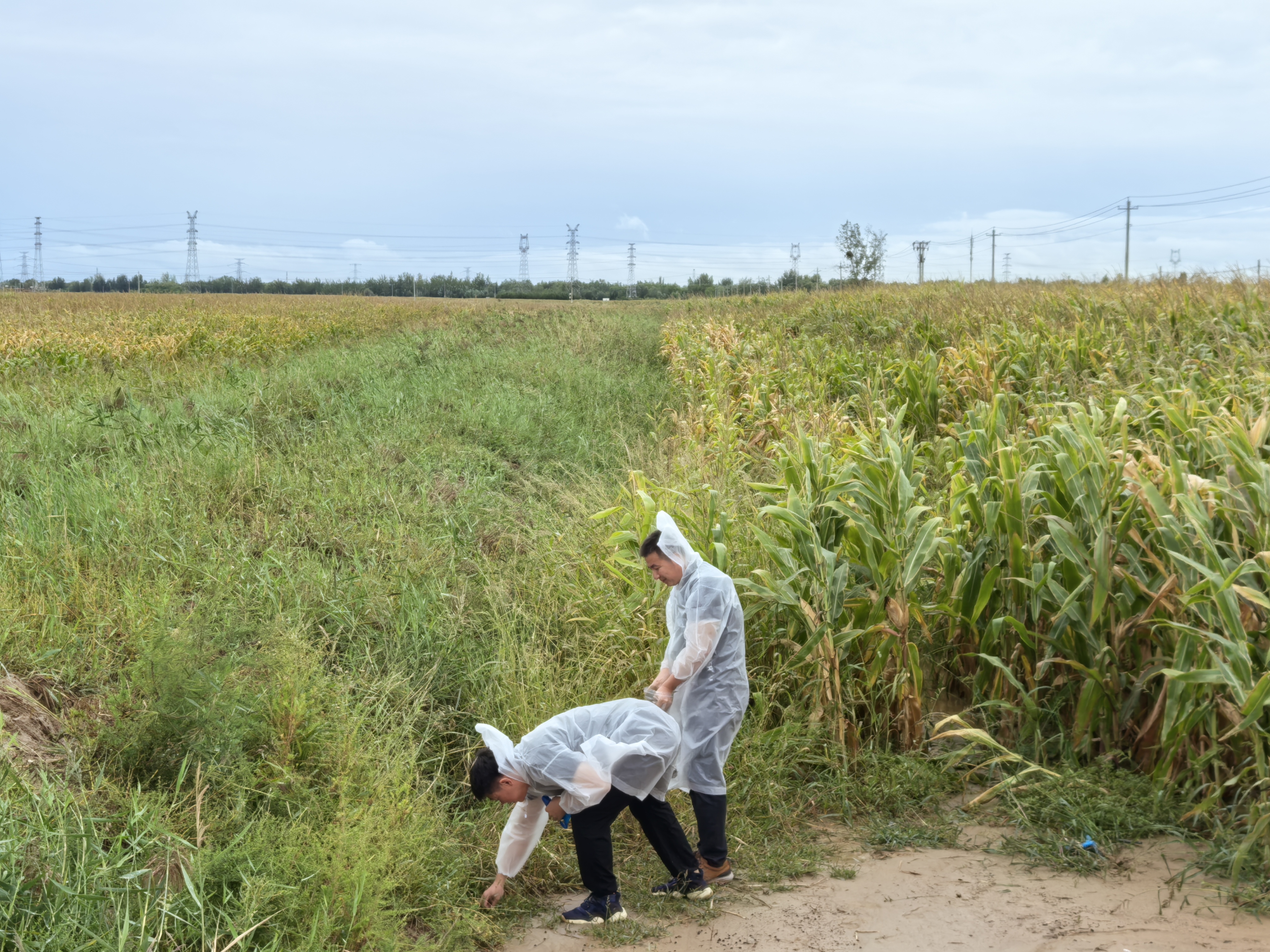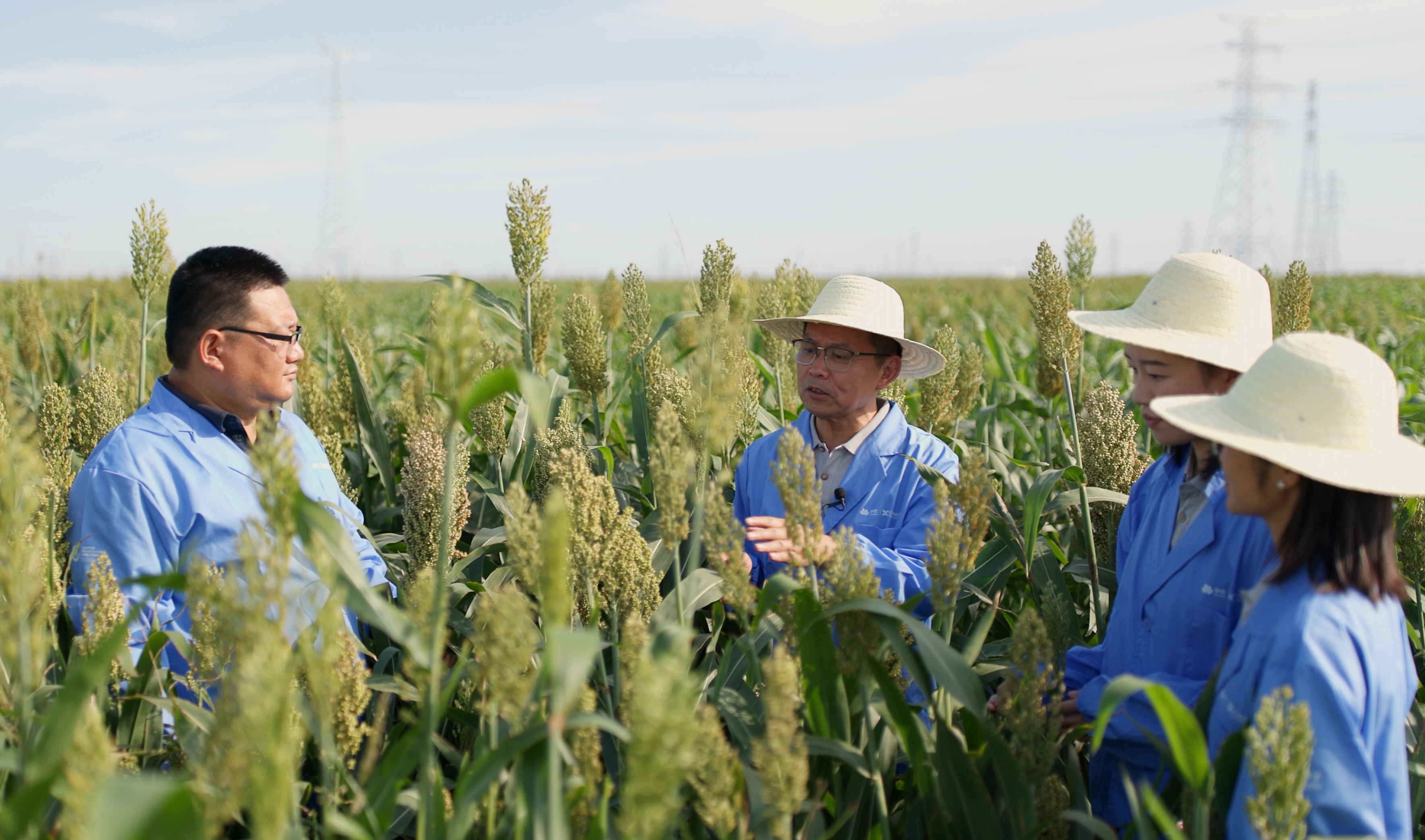 謝旗團(tuán)隊(duì)在寧夏石嘴山市大武口田間觀察AT1高粱長勢 中國中化供圖