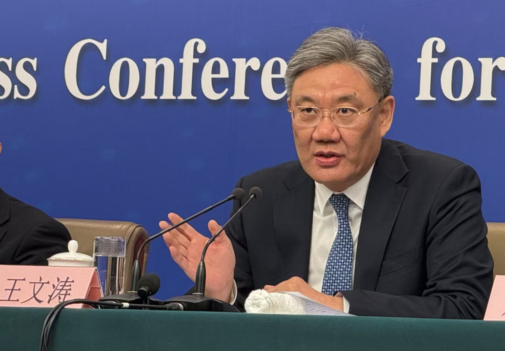 商務(wù)部部長(zhǎng)王文濤回答記者提問(攝影/劉釗)