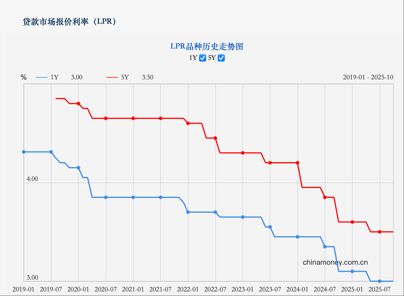 10月20日,中國人民銀行授權(quán)全國銀行間同業(yè)拆借中心公布,2025年10月20日貸款市場報價利率(LPR)為:1年期LPR為3.0%,5年期以上LPR為3.5%。兩個期限品種LPR較上月均維持不變。