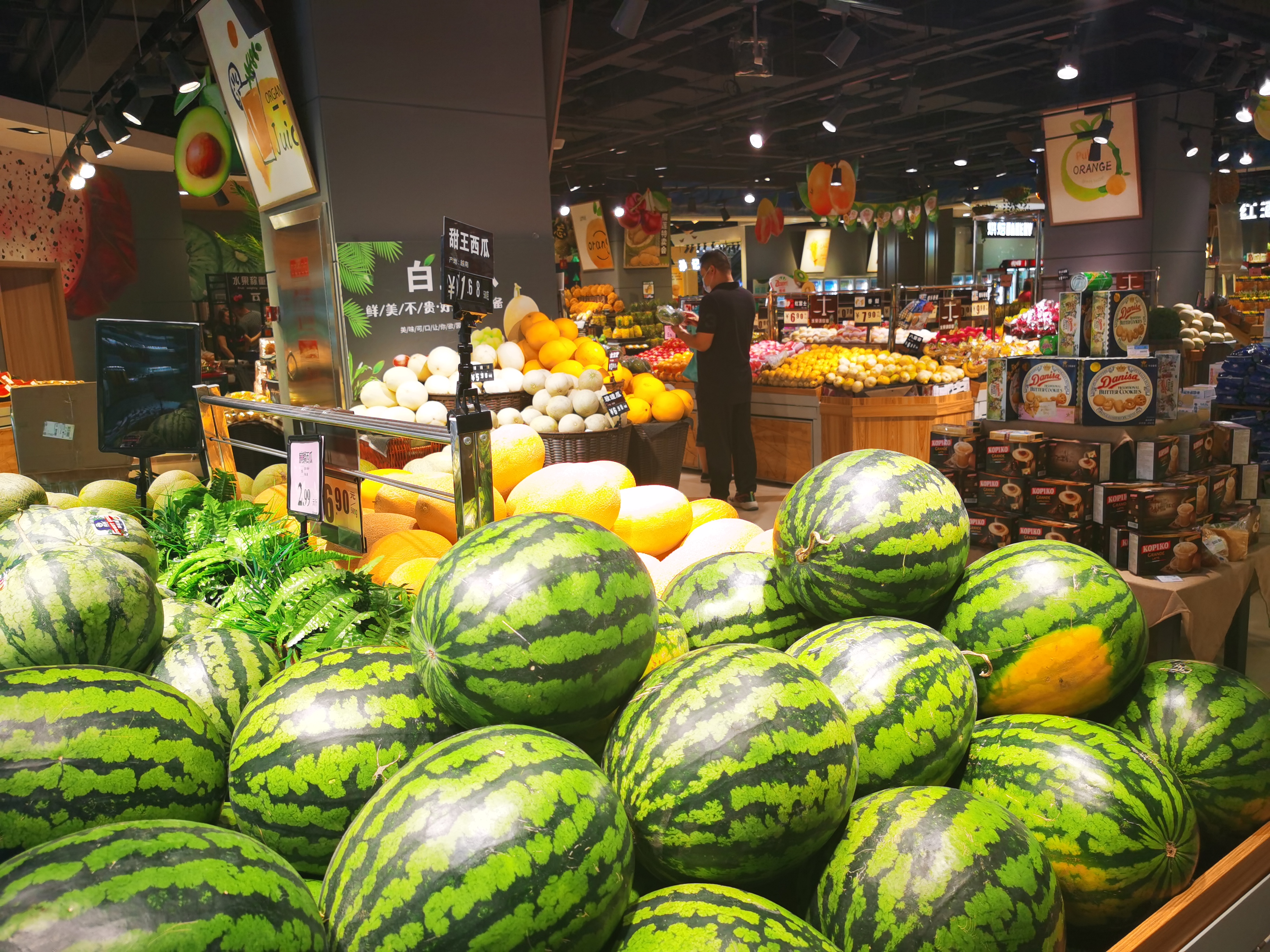 6月17日下午,沈陽的氣溫攀升到了34攝氏度,在太原街中興商業(yè)的超市賣場中,各種商品琳瑯滿目。產(chǎn)自越南的甜王西瓜在這里的售價為1.68元/斤,新鮮的豬前腿肉售價為23.5/斤。在水產(chǎn)品柜臺,有各式的海魚和淡水魚,還有新鮮的生蠔、扇貝和鮑魚等海產(chǎn)品售賣。其中8-10頭的鮮活鮑魚售價僅為7元/頭,還買一送一。