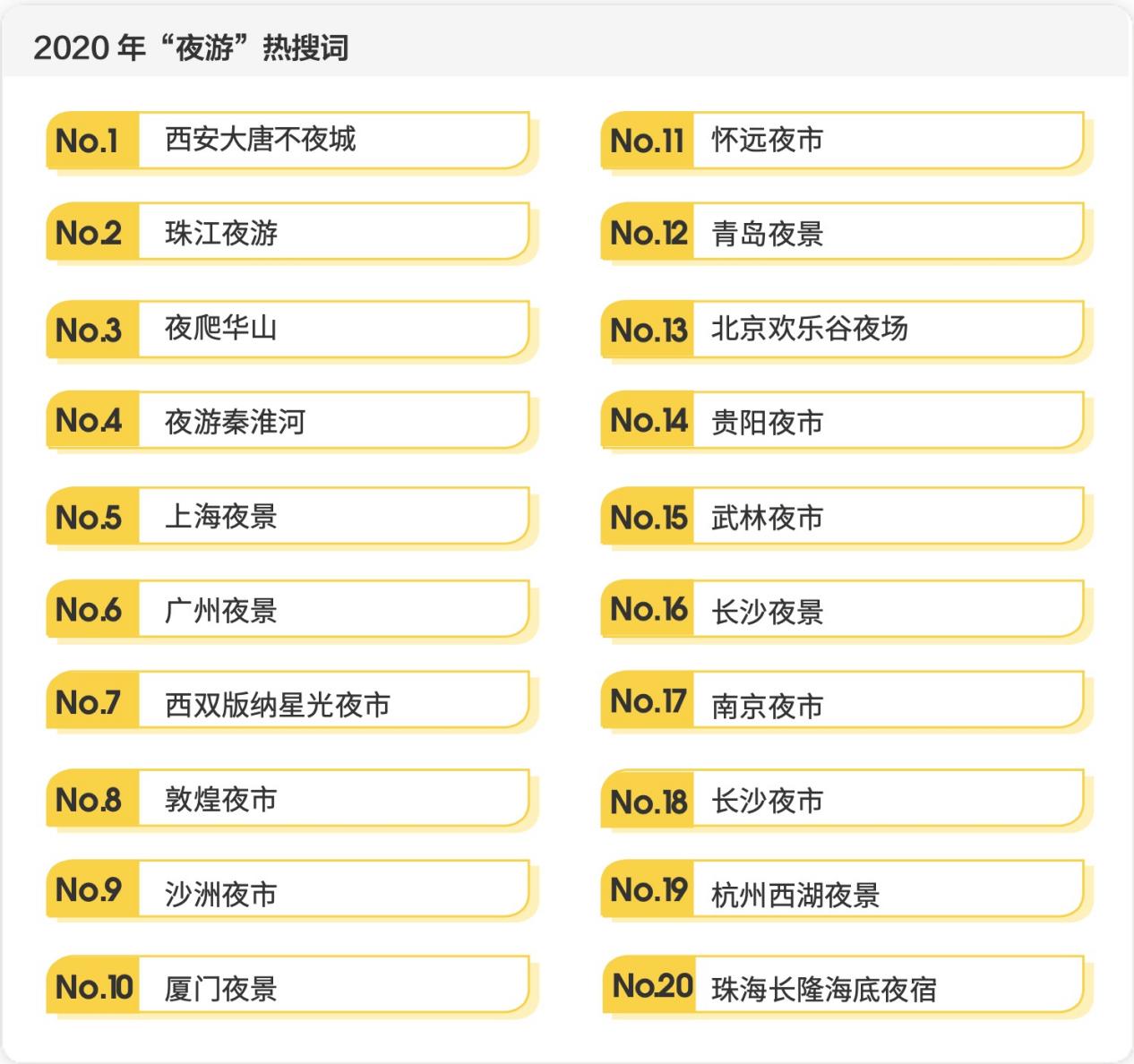 夜間旅游消費(fèi),成為2020年文旅產(chǎn)業(yè)高質(zhì)量發(fā)展過(guò)程中的突出亮點(diǎn)。近年來(lái),全國(guó)各大目的地紛紛布局夜間旅游,江河夜游、夜間演藝、小吃夜市等各類項(xiàng)目相繼亮相,不少景區(qū)也嘗試延長(zhǎng)游覽時(shí)間,為游客提供了更多夜游選擇。