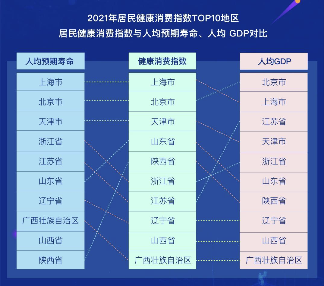 圖:2021年居民健康消費指數(shù)TOP10地區(qū)
