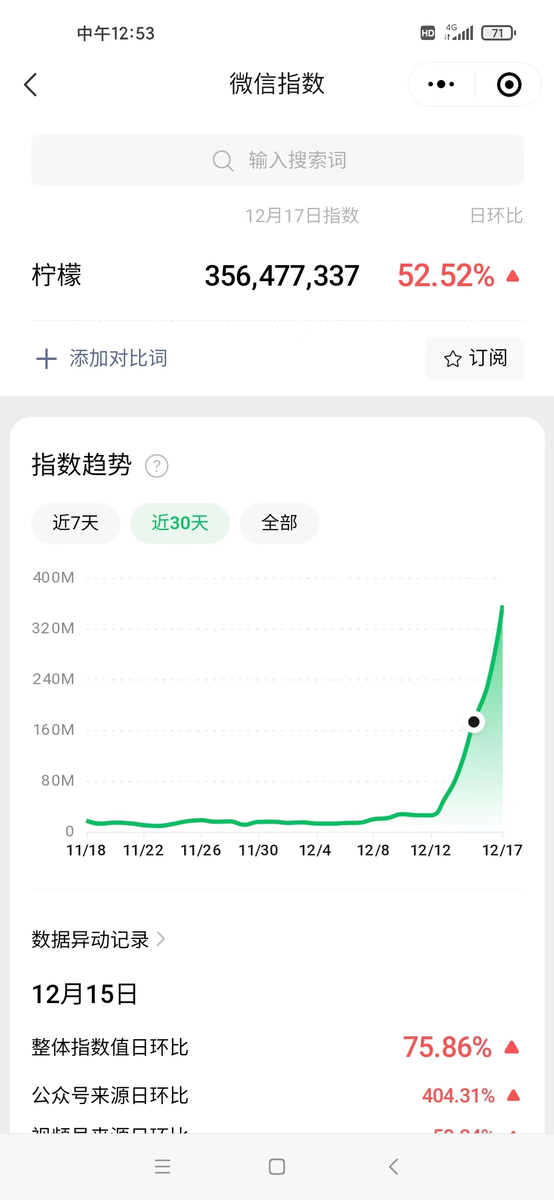 關鍵詞“檸檬”微信指數(shù)一路走高(供圖:微信)