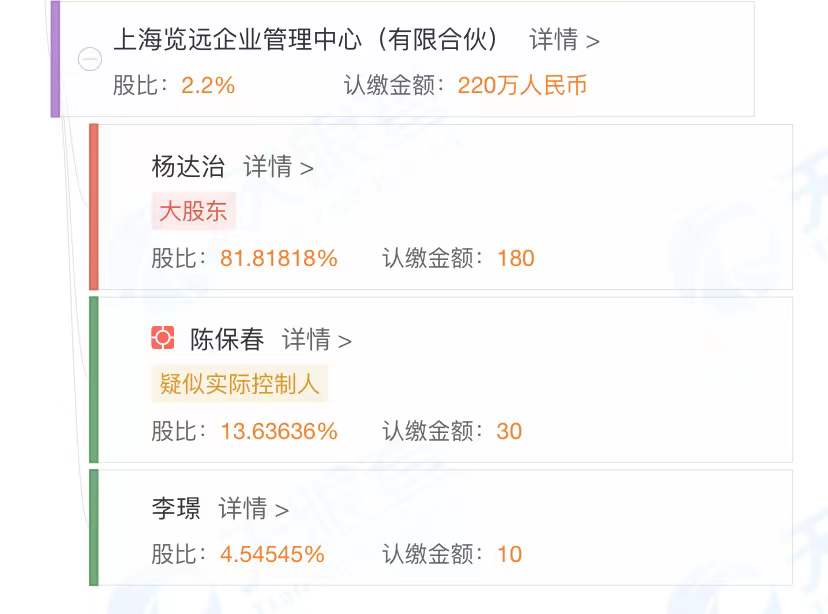 公開資料顯示,新增的上海覽遠(yuǎn)企業(yè)管理中心(有限合伙)成立于2021年12月8日,股東分別為楊達(dá)治、陳保春和李璟。具體來看,上海覽遠(yuǎn)企業(yè)管理中心(有限合伙)合計(jì)認(rèn)繳220萬元,其中,楊達(dá)治、陳保春、李璟三人分別認(rèn)繳180萬元、30萬元、10萬元,合計(jì)持有睿遠(yuǎn)基金2.2%股權(quán),成為睿遠(yuǎn)基金新進(jìn)的第十大股東。