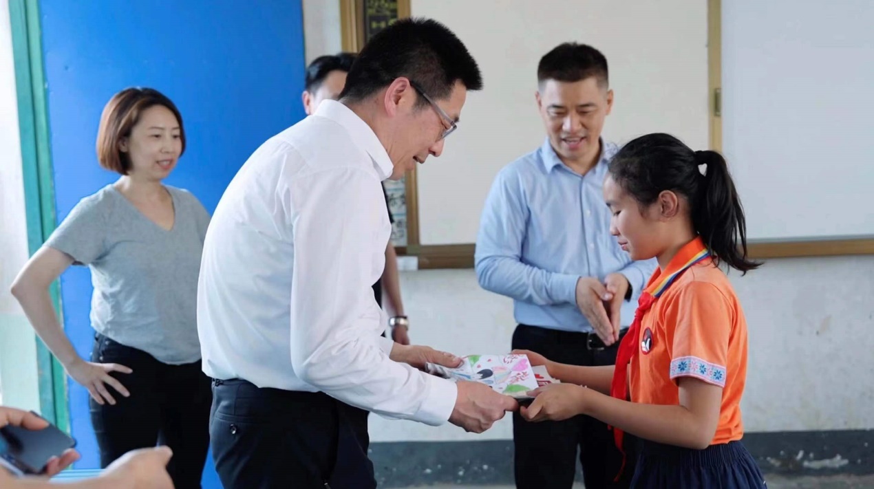 活動(dòng)當(dāng)天,平安基金黨員職工代表一行來(lái)到恭城縣平安希望小學(xué)看望老師學(xué)生,了解學(xué)生學(xué)習(xí)生活狀況、校園軟硬件設(shè)施情況,并與恭城中心校校長(zhǎng)、平安希望小學(xué)校長(zhǎng)進(jìn)行溝通,為下一階段教育公益活動(dòng)做準(zhǔn)備。平安基金黨委委員、紀(jì)委書記陳特正一行還走進(jìn)教室,與同學(xué)們問(wèn)候交談,鼓勵(lì)大家健康成長(zhǎng)、努力學(xué)習(xí),實(shí)現(xiàn)自己的理想,并提前為孩子們送上“六一兒童節(jié)”禮物。
