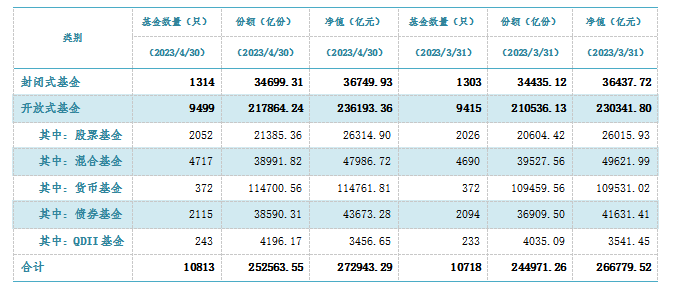 5月25日晚,中國證券投資基金業(yè)協(xié)會發(fā)布2023年4月份公募基金市場數(shù)據(jù)。