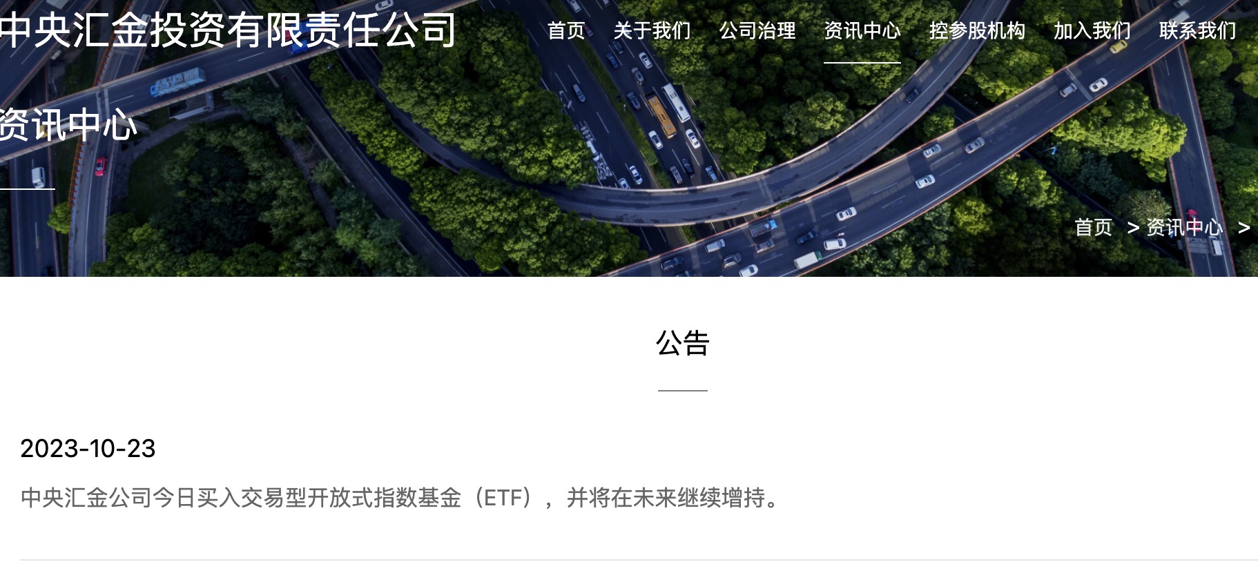 10月23日,中央?yún)R金投資有限責(zé)任公司公告稱(chēng),中央?yún)R金公司今日買(mǎi)入交易型開(kāi)放式指數(shù)基金(ETF),并將在未來(lái)繼續(xù)增持。