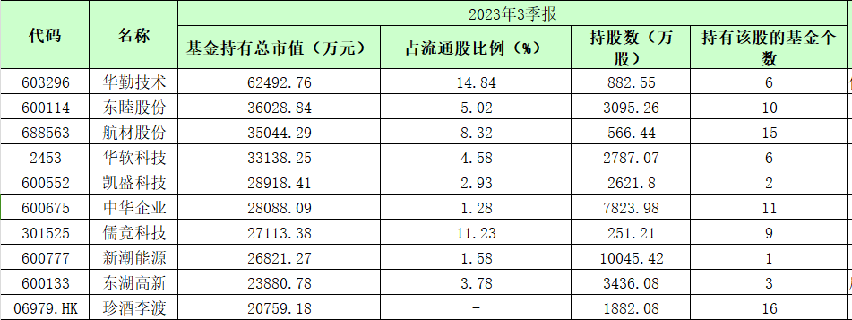 三季度公募基金還新進(jìn)持有了多只個(gè)股,從排名前50榜單來看,最低持有市值在4500萬元以上;其中,持有市值超過1億元的有18只。具體來看:華勤技術(shù)以6.25億元的持有市值排名居首,東睦股份、航材股份、華軟科技、凱盛科技、中華企業(yè)和儒競(jìng)科技等9只個(gè)股持有市值在2億元至4億元之間。