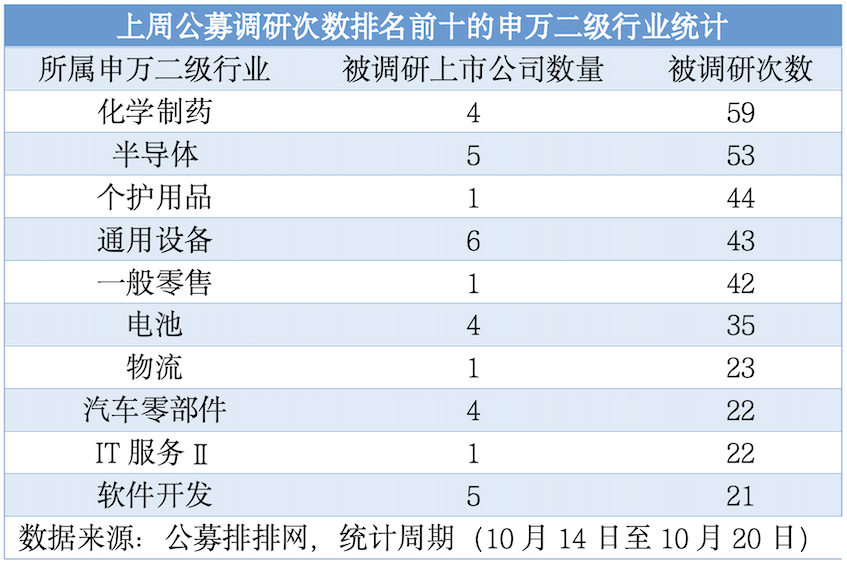 (上周公募調(diào)研次數(shù)排名前十的申萬二級行業(yè)統(tǒng)計(jì))
