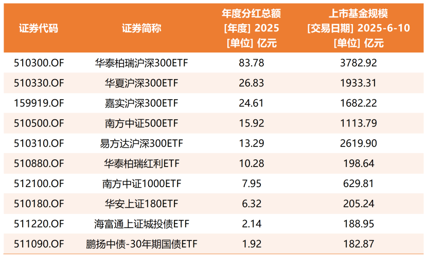 Wind資訊數(shù)據(jù)顯示,截至6月10日,華泰柏瑞滬深300ETF規(guī)模達(dá)3782.92億元,基金份額為952.06億份。這意味著,若權(quán)益登記日前產(chǎn)品份額無(wú)較大變化,根據(jù)基金分紅公告,本次華泰柏瑞滬深300ETF分紅總額將超過(guò)80億元,這一數(shù)字有望刷新境內(nèi)ETF有史以來(lái)最高單次分紅紀(jì)錄。