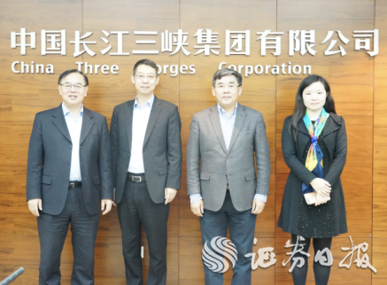 中國長江三峽集團(tuán)公司黨組成員、總會計師楊亞(左一),集團(tuán)公司黨組成員、副總經(jīng)理、中國長江電力股份公司總經(jīng)理張定明(右二)與證券日報記者董少鵬(左二)、新華社記者趙曉輝(右一)在采訪后合影。