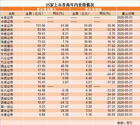 前5個(gè)月10家上市券商