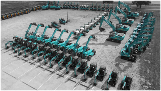 在美國得州大雪天氣下山河智能產(chǎn)品整齊劃一準備交付(供圖:山河智能)