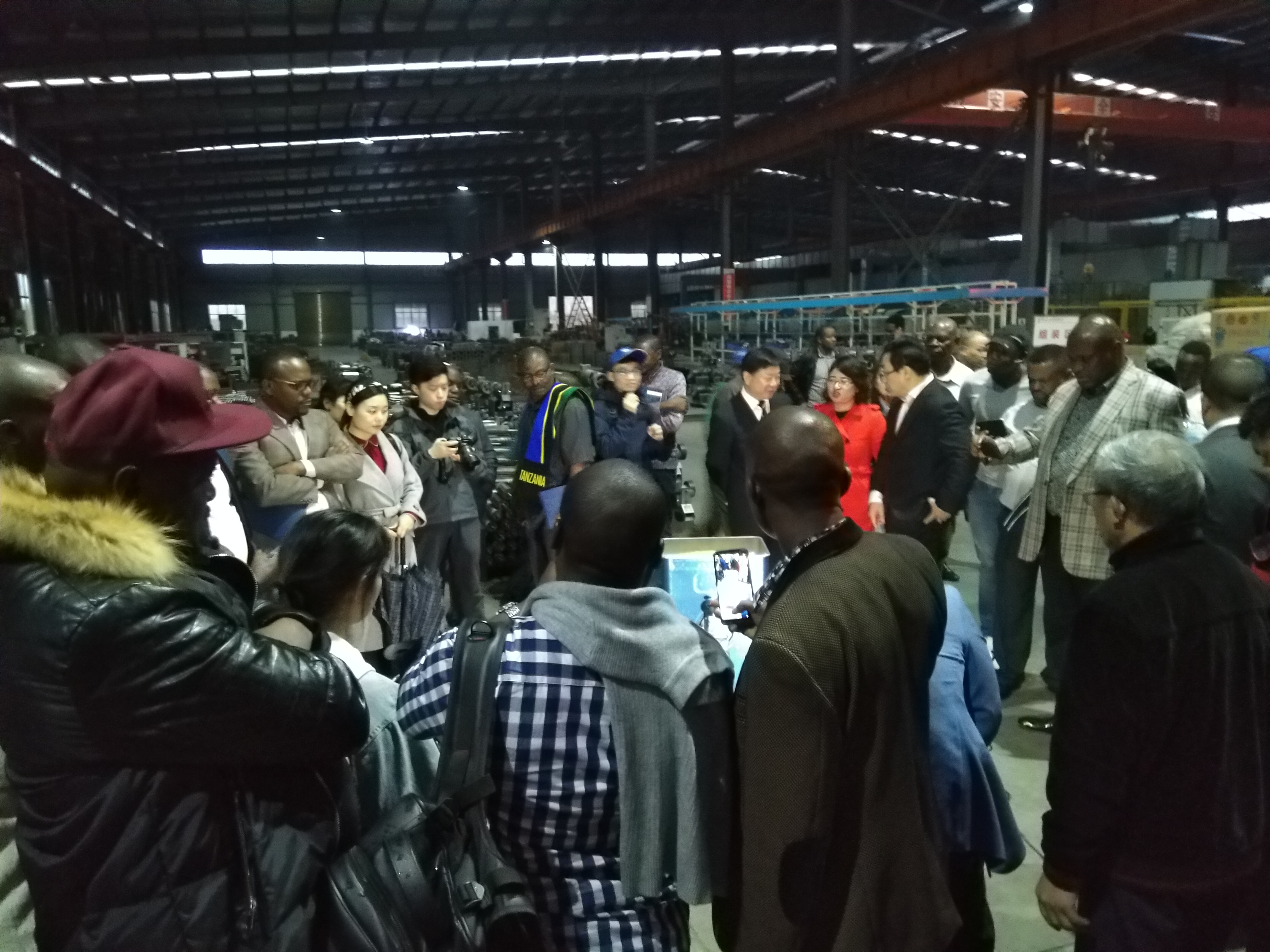 來(lái)自非洲的客商們正在觀看勁松機(jī)械的設(shè)備演示(供圖:勁松機(jī)械)