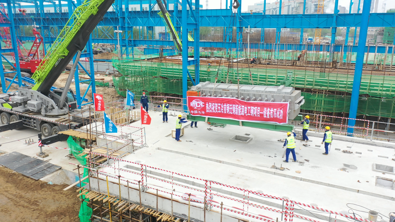 2021年4月30日上午首鋼新能源汽車材料項目首套設(shè)備——連退七號線堿噴洗槽一次吊裝成功,標志著首鋼新能源項目全面進入了設(shè)備安裝階段。
