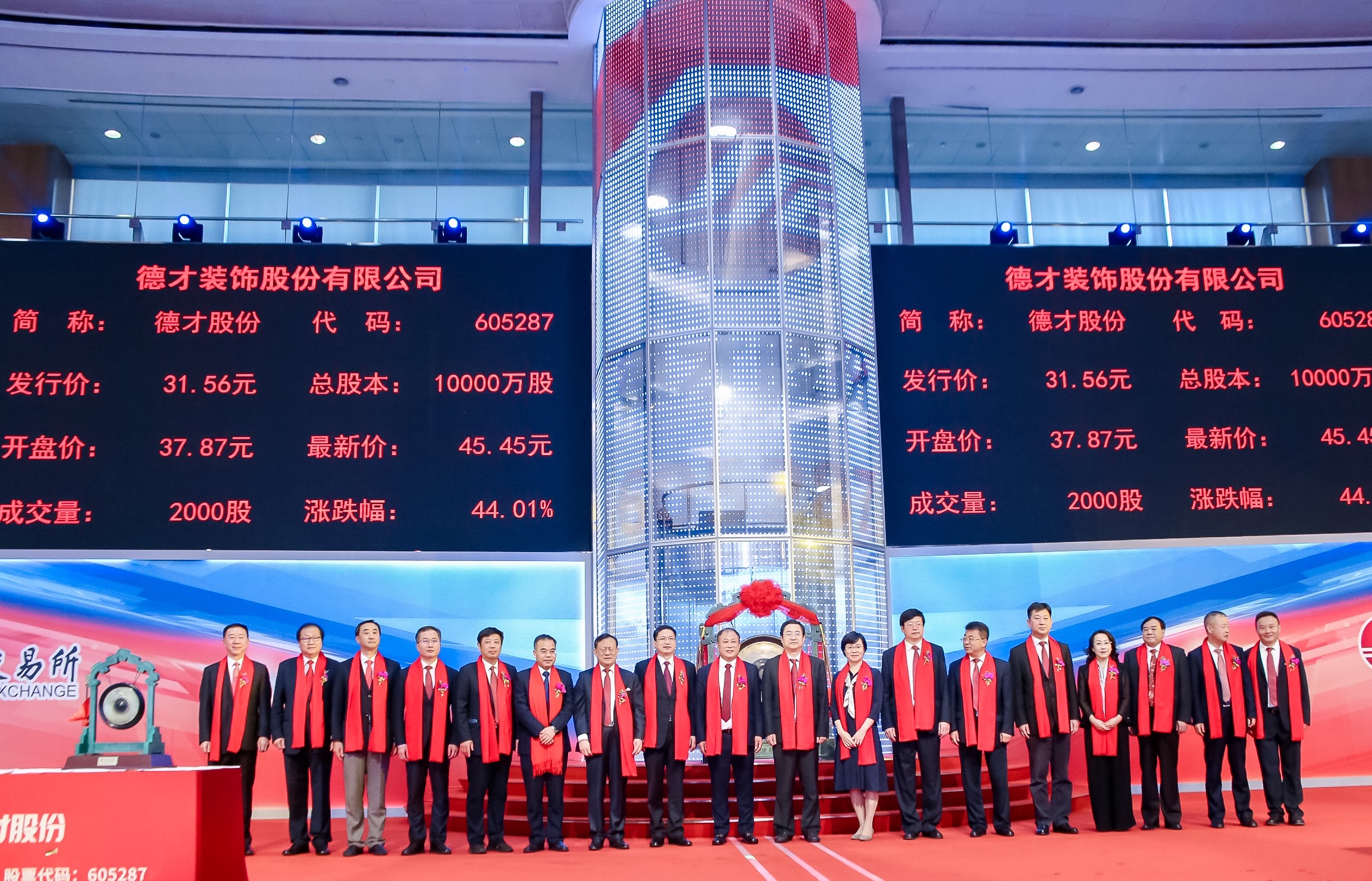 7月6日,德才裝飾股份有限公司(股票簡稱:德才股份,股票代碼:605287)在上交所主板正式上市,成為山東省第一家在國內(nèi)A股上市的建筑業(yè)企業(yè)。