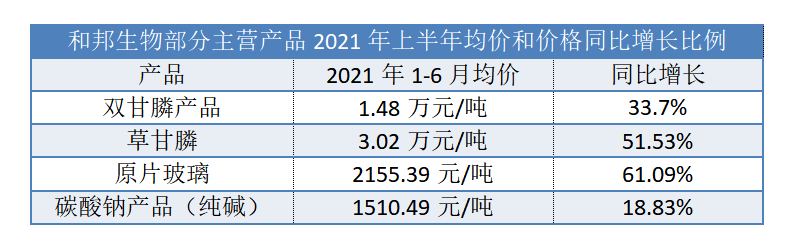 對于2021年上半年經(jīng)營業(yè)績大幅增長的原因,和邦生物表示,從外部環(huán)境來看,主要受益于環(huán)保、2020年度疫情對落后產(chǎn)能的進一步出清以及產(chǎn)能擴張限制,疊加下游需求增長,純堿、玻璃銷售價格大幅上漲。同時還疊加下游農(nóng)業(yè)產(chǎn)業(yè)的需求增長和新作物品種的投放,外加農(nóng)產(chǎn)品價格上漲,農(nóng)戶種植積極性提升等因素的影響,使得草甘膦需求旺盛,價格上漲。從公司內(nèi)部角度來看,和邦生物基于對2021年度產(chǎn)品行情的趨勢判斷并開展系列準備工作、擬定可供執(zhí)行的生產(chǎn)計劃并實現(xiàn)生產(chǎn)按計劃高產(chǎn)、穩(wěn)定運行,從而保證了銷售的穩(wěn)步提升。公司還稱,通過不斷的產(chǎn)能、技術(shù)挖潛,在2020年度完成了雙甘膦升級優(yōu)化項目,從而提升了產(chǎn)能利用率及成本控制能力,使公司的產(chǎn)品競爭力和盈利水平進一步提高。