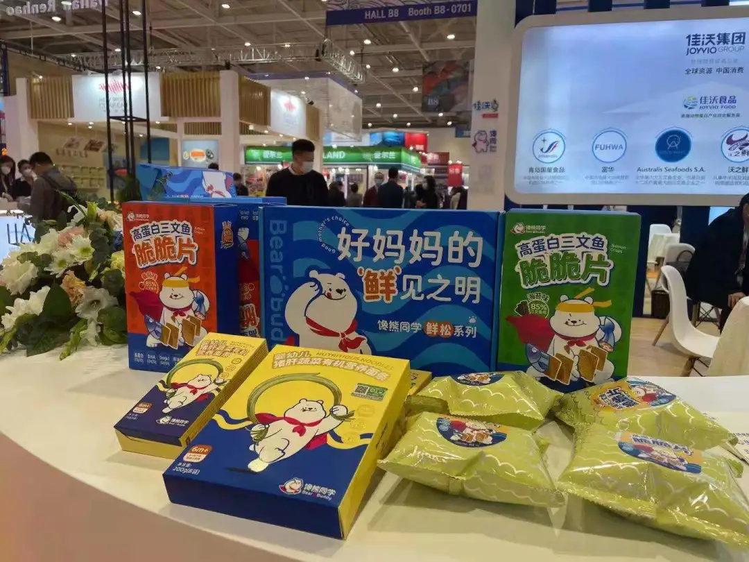 在3R食品方面,佳沃食品針對母嬰客戶群體推出了高營養(yǎng)兒童食品品牌“饞熊同學”,新產品“三文魚鮮松”“三文魚脆脆片”等優(yōu)質蛋白產品,并在第25屆中國國際漁業(yè)博覽會上亮相。吳爽介紹相關情況:“目前,‘饞熊同學’產品已在天貓、京東等電商平臺銷售,獲得市場廣泛認可。”