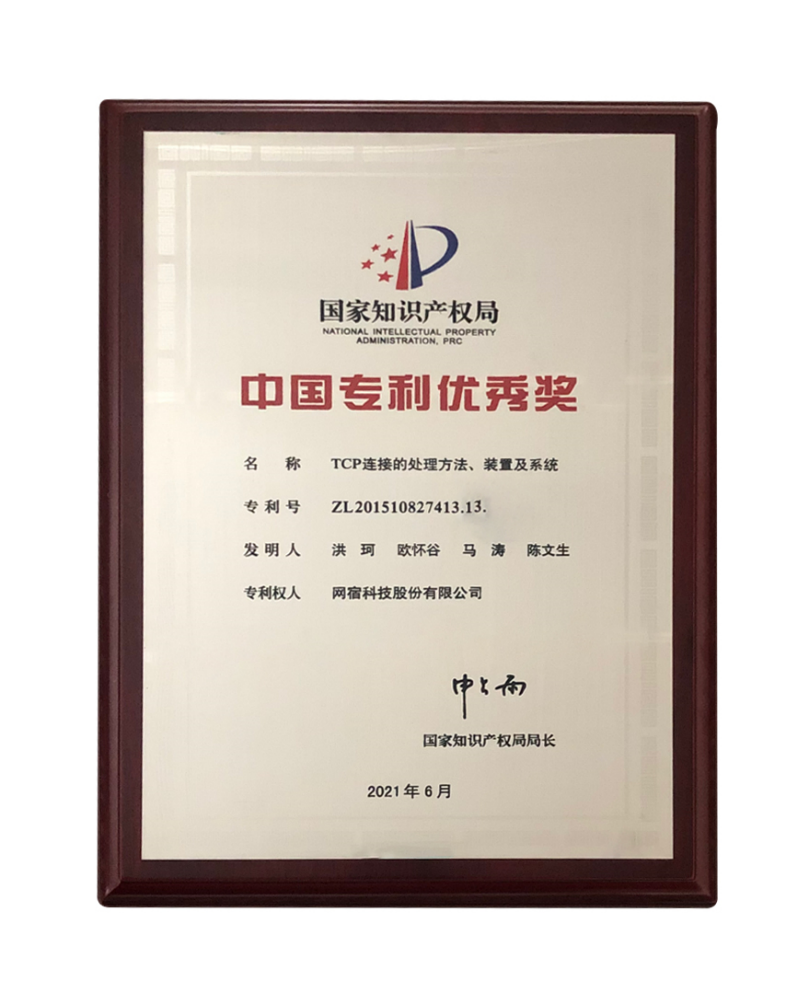 圖片說明:網(wǎng)宿科技獲“中國(guó)專利優(yōu)秀獎(jiǎng)”