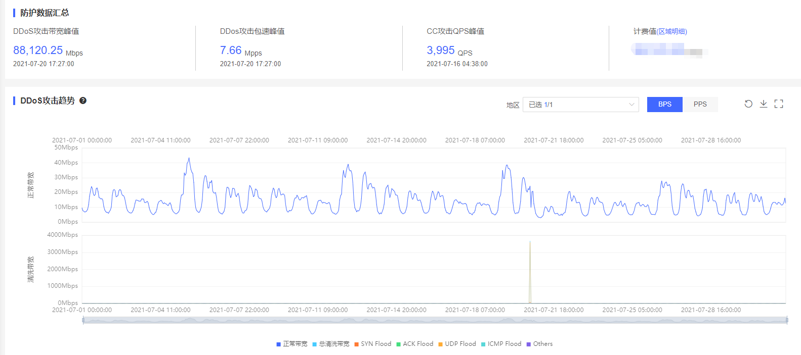 圖片說明:某省級(jí)媒體客戶DDoS攻擊防護(hù)效果圖