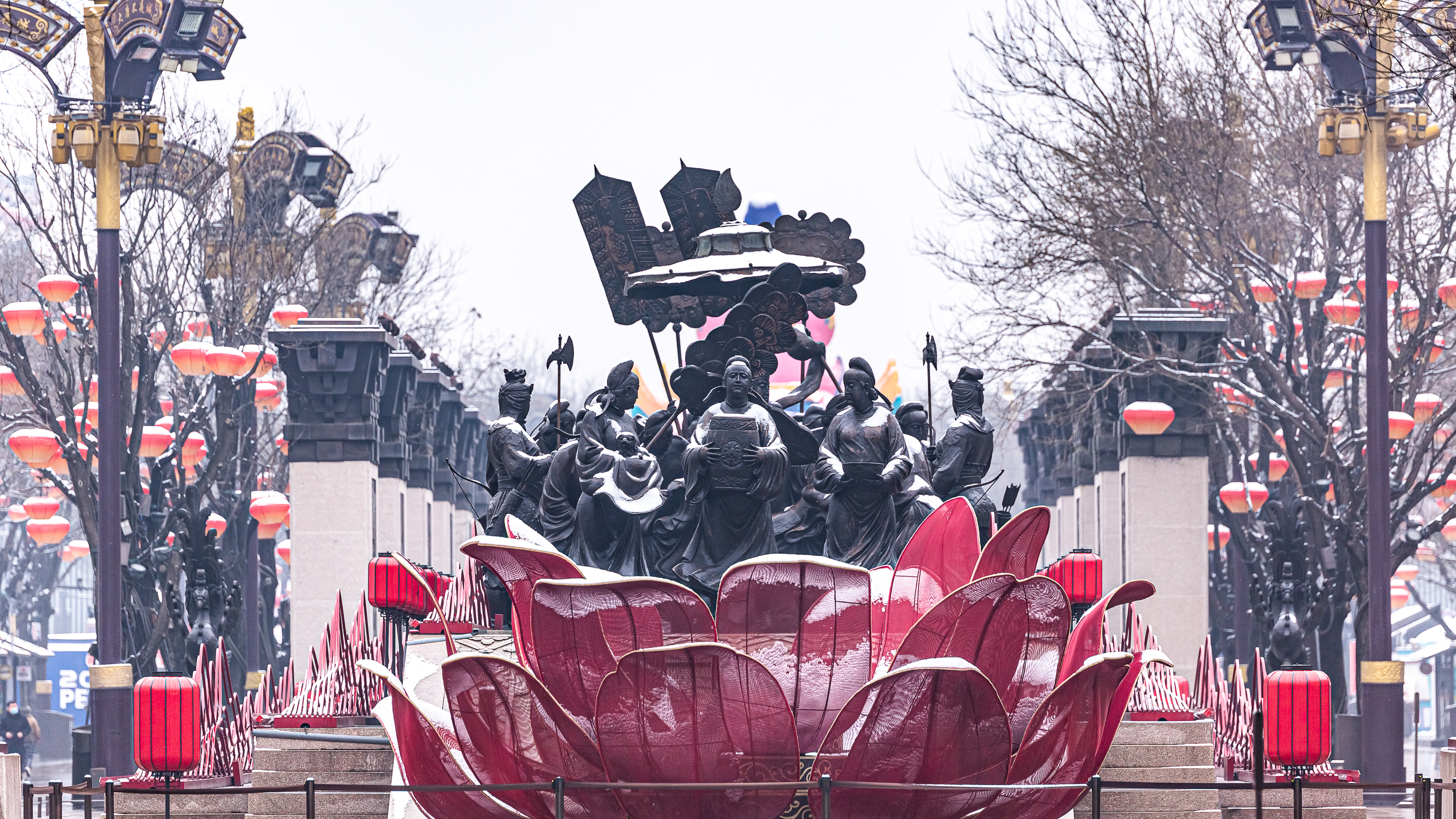春節(jié)的一場大雪讓西安這座古城“更長安”。大唐芙蓉園里,燈火璀璨。