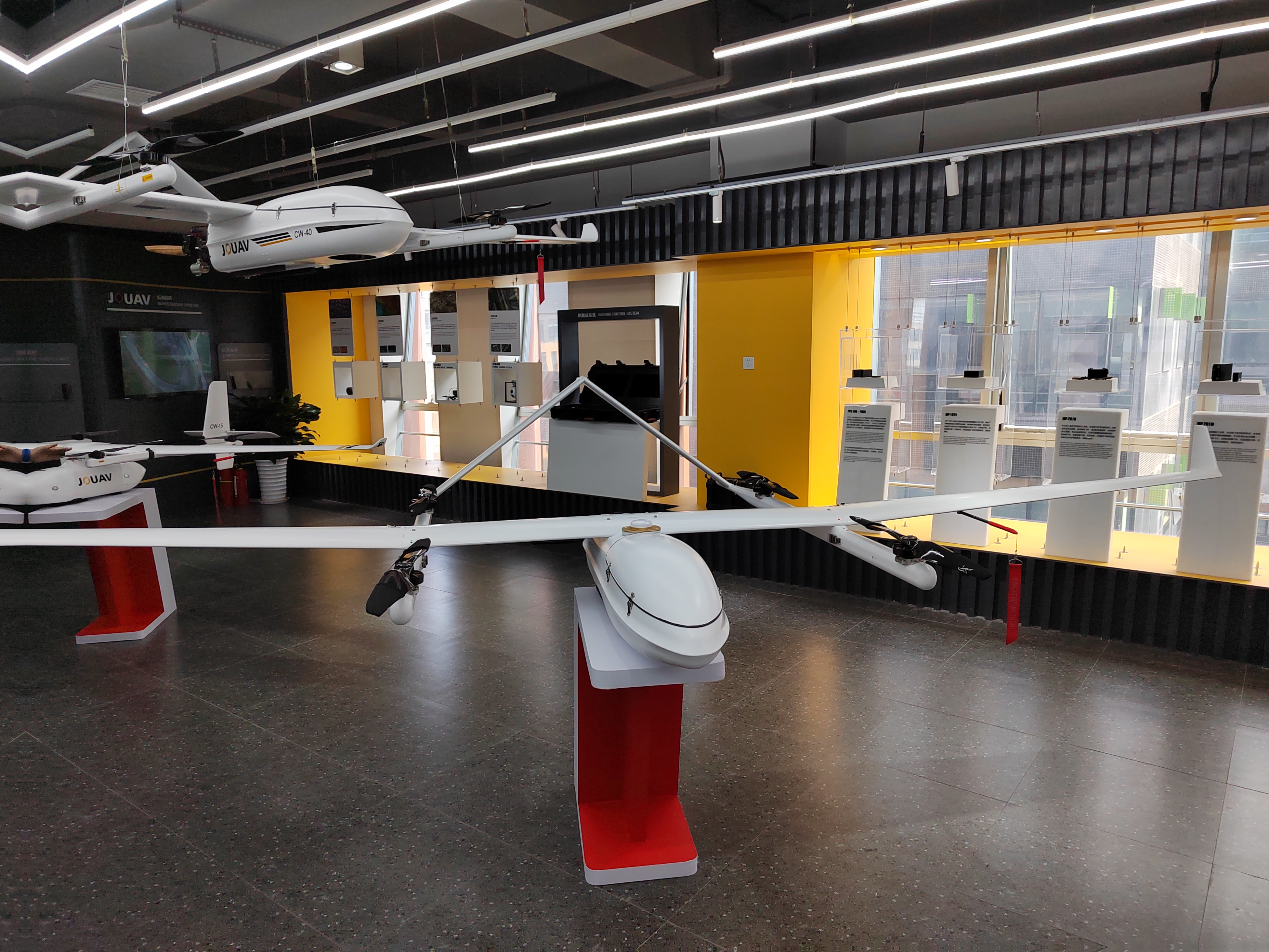 (圖為縱橫股份公司大廳展出的無人機產(chǎn)品,拍攝:舒婭疆)